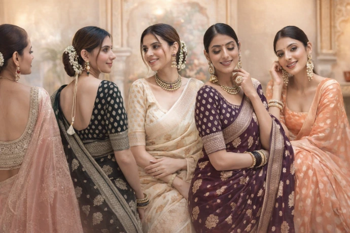 Elevate your wardrobe with our thoughtfully designed saree collection. From wedding celebrations to festive and everyday moments, our styles are crafted to bring timeless elegance and confidence to your life.